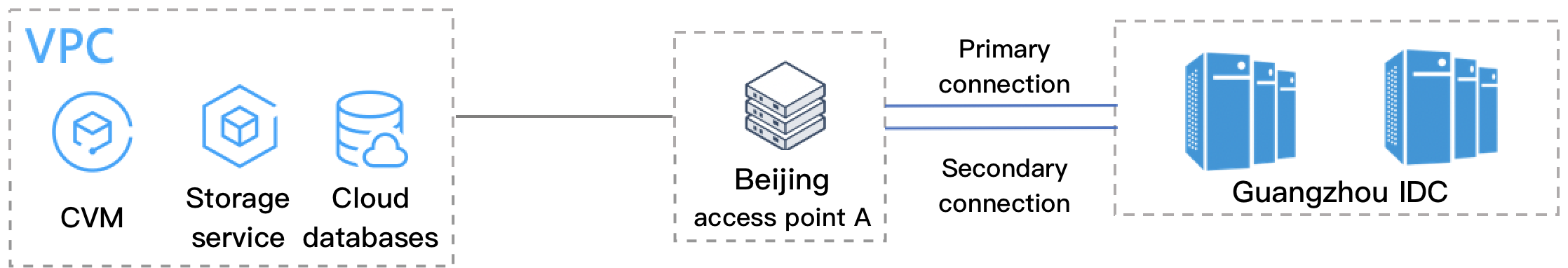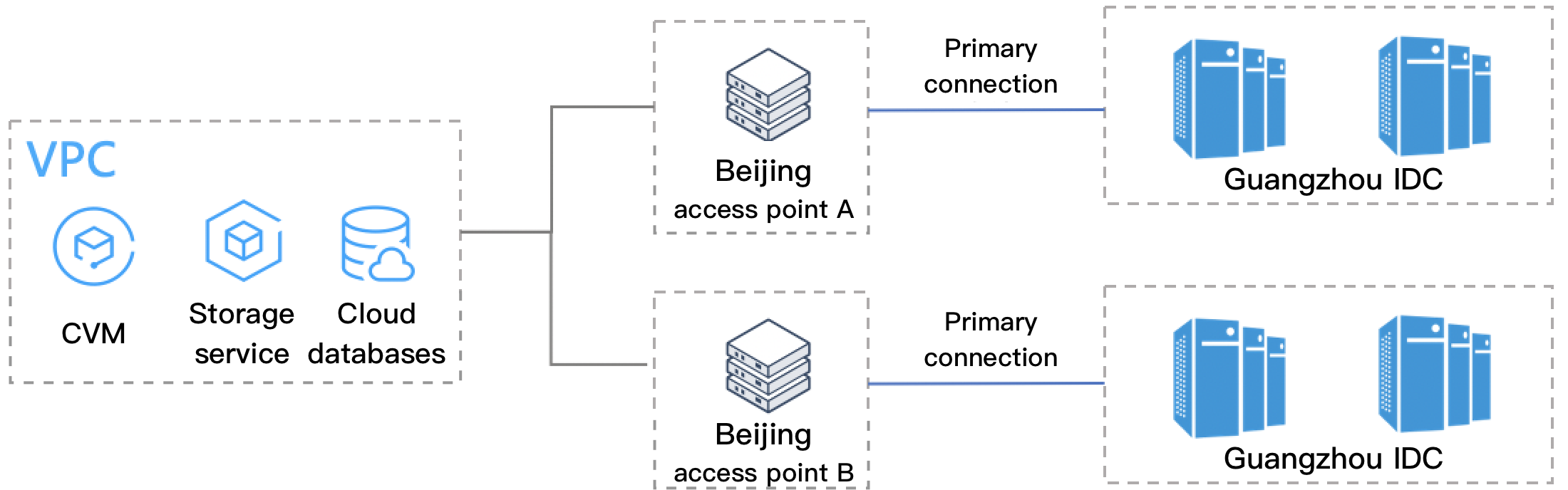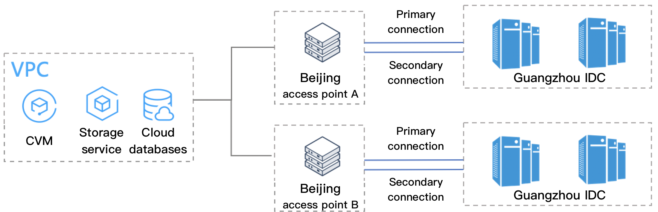 接入点机房故障 | 若每条物理专线使用率小于等于 50%,则物理专线负载率骤增,业务不会中断。 若每条物理专线使用率大于 50%,则物理专线负载满载,部分业务数据丢失,业务不会中断。 | 若业务数据丢失,可采取措施如下: 联系接入点机房运营商修复机房故障,恢复时间视具体故障而定。 重新申请专线连接至其他接入点,恢复时长约 2-3 个月。 |