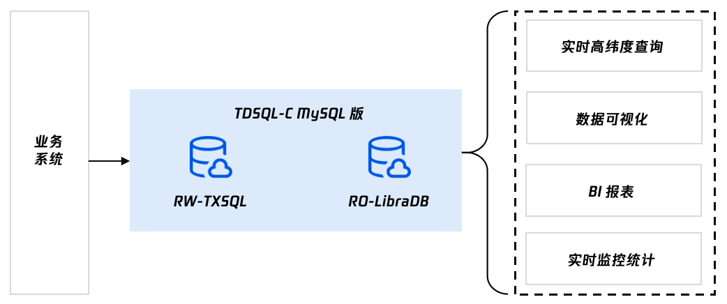 随着数据量的不断增长,企业需要处理的数据变得越来越复杂,不同的业务部门和用户需要不同类型的数据分析,并且数据分析的实时性越来越重要,这成为如今商业环境中,企业是否能够快速地获取并分析数据,以便及时做出决策和调整战略的业务痛点。 | 实时高纬度查询 数据可视化 BI 报表 实时监控统计 | 无需再运维复杂且成本高昂的 ETL 组件,TDSQL-C MySQL 版在 TXSQL 引擎中的数据可直接同步至只读实例的 LibraDB 引擎。 LibraDB 引擎可通过向量化执行引擎、大规模并行处理与列式存储的加速能力,实现在大规模数据场景下的高性能数据实时分析。 | 开启只读分析引擎 执行查询 |
