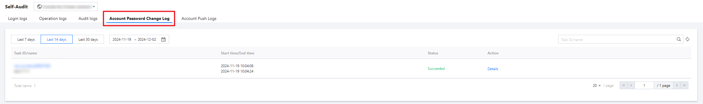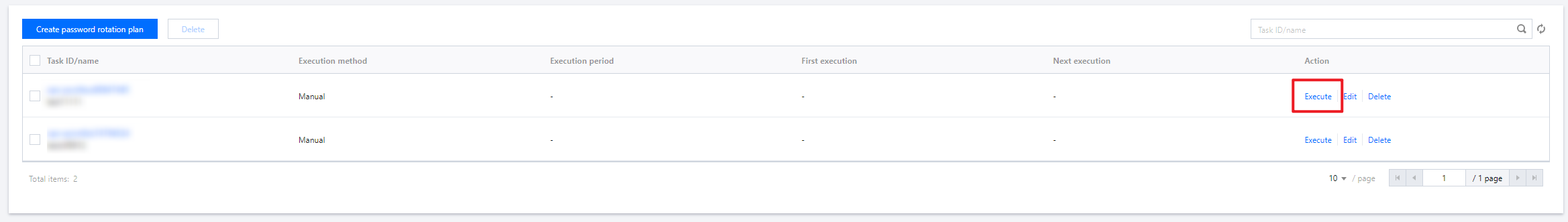 Password change method | Options: Use the execution account to change the password and change your own password. |