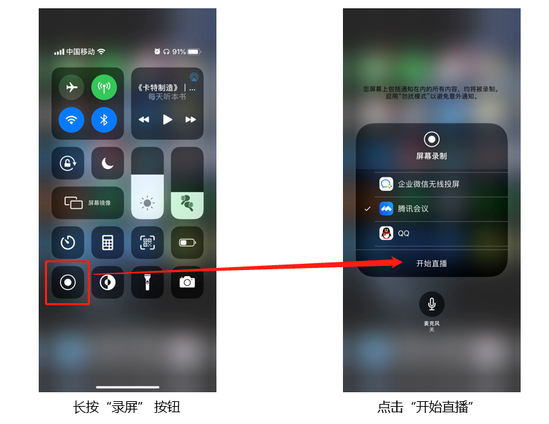 Broadcast Upload Extension 进行触发,下图以腾讯会议为例: