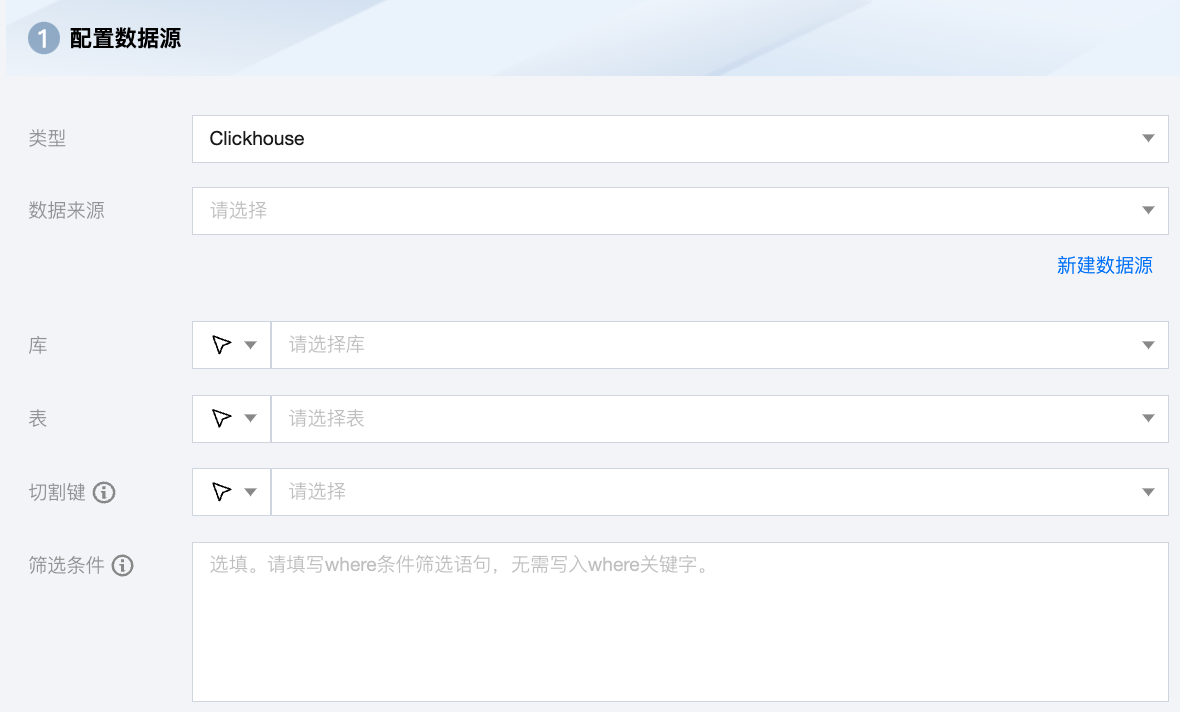 筛选条件(选填) | 在实际业务场景中,通常会选择当天的数据进行同步,将 where 条件指定为 gmt_create>$bizdate。 where 条件可以有效地进行业务增量同步。 如果不填写 where 语句,包括不提供 where 的 key 或 value,数据同步均视作同步全量数据。 |