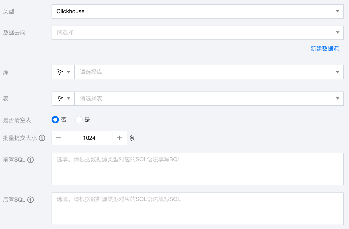 数据去向 | 需要写入的 Clickhouse 数据源。 |