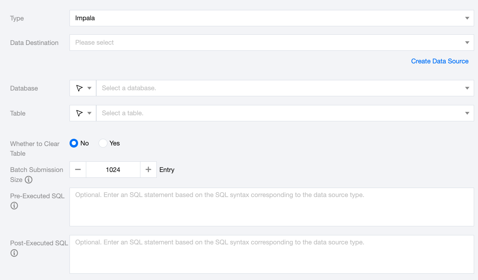 Whether to Clear Table | You can manually choose whether to clear the Impala data table before writing to it. |