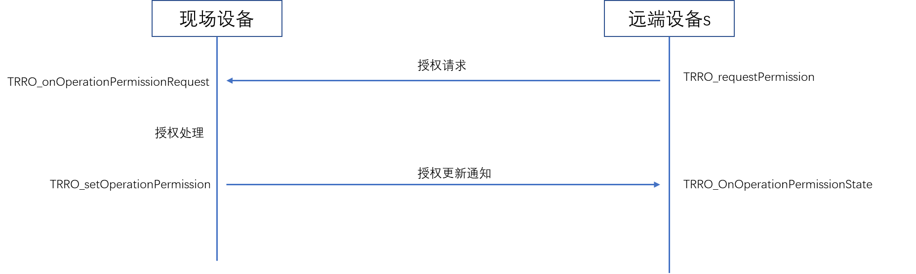 auto_permission字段,设置为1时为自动授权模式,设置为0时是应用授权模式,缺省配置默认为自动授权模式。/** 回调注册函数* context 上下文指针,回调时会返回注册时传入的该指针,* callback 注册的 TRRO_OnOperationPermissionState 回调函数*/extern "C" TRRO_EXPORT void TRRO_registerOnOperationPermissionState(void* context, TRRO_OnOperationPermissionState* callback);/** #name : TRRO_OnOperationPermissionState* @brief : 回调现场设备操控权限状态通知* @input : context 回调上下文指针, 返回注册回调函数时传入的 context* field_devid 来源现场设备 ID* self_permission 本远端设备当前操控权限,参考 TrroPermission, 0 是 guest,只有观看权限, 1是 master,拥有完全控制权限* master_devid 拥有 master 权限的远端设备 ID* @return : void*/typedef void STD_CALL TRRO_OnOperationPermissionState(void* context, const char* field_devid, int self_permission, const char* master_devid);