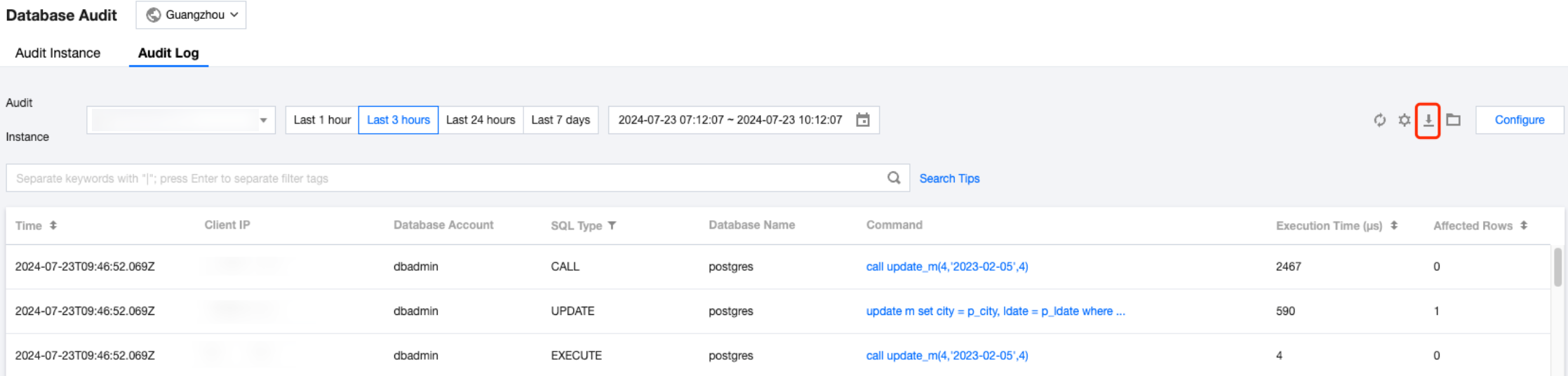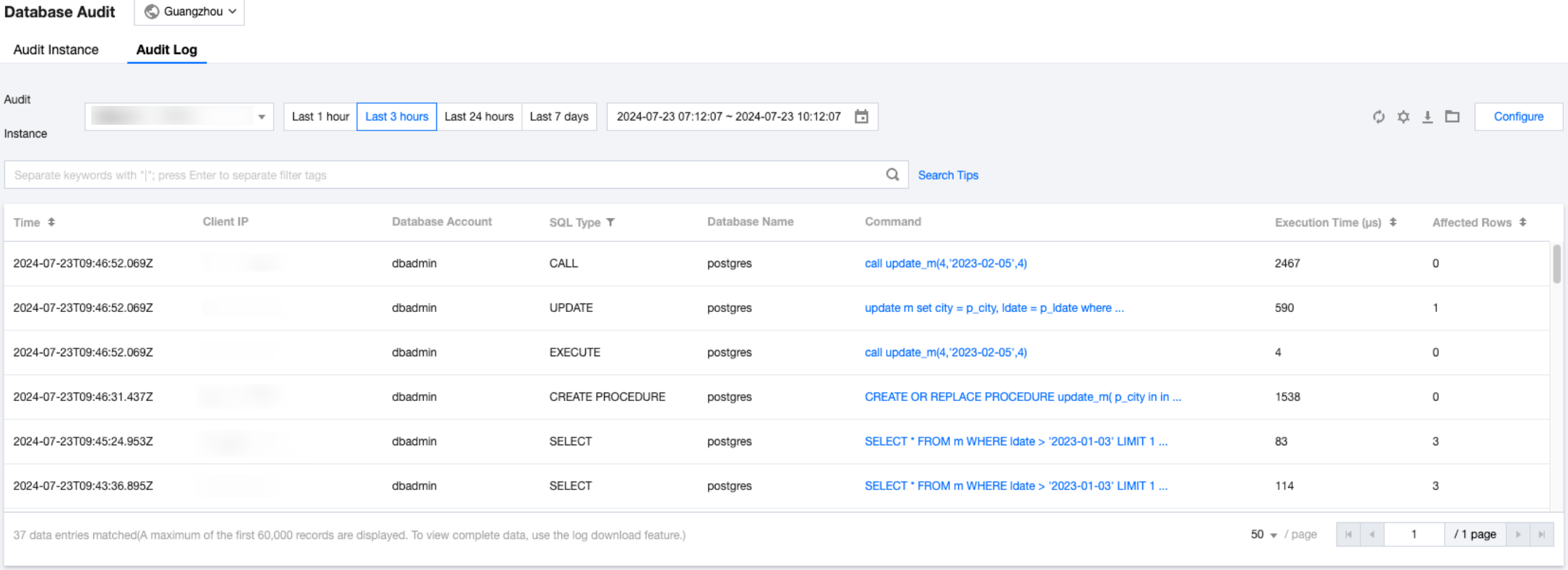 Command | Enter SQL Details. Multiple keywords are separated by line breaks. SQL command details search is case-insensitive. When the match type is either "include" or "exclude", it only supports fuzzy search at the token level, instead of wildcard fuzzy search. |