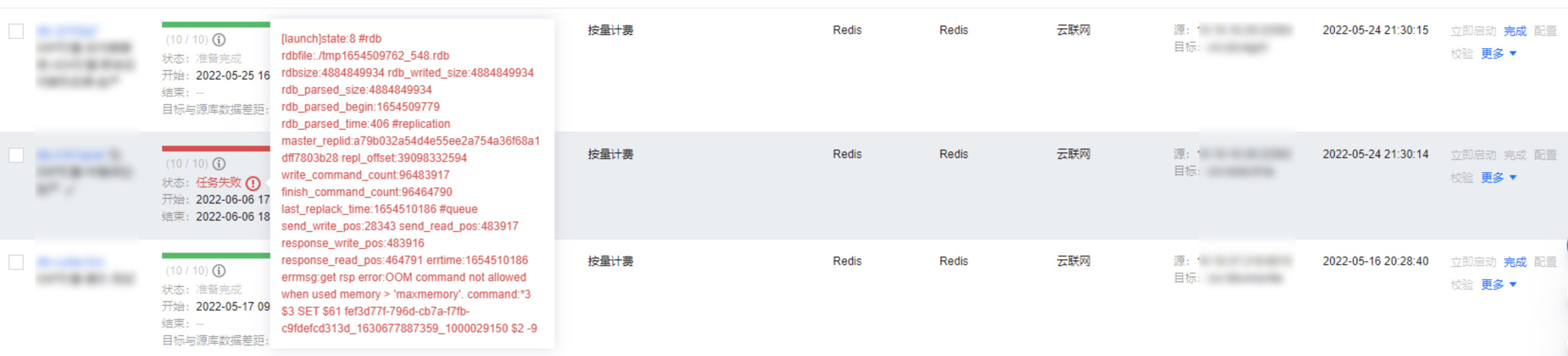 [launch]state:4/5 #rdb rdbfile: rdbsize:0 rdb_writed_size:0 rdb_parsed_size:0 rdb_parsed_begin:0 rdb_parsed_time:0 #replication master_replid:d3e707ec0e72c3908b0ce70dd2460f48086c5386 repl_offset:683087907631 write_command_count:0 finish_command_count:0 last_replack_time:0 #queue send_write_pos:0 send_read_pos:0 response_write_pos:0 response_read_pos:0 errtime:1654369638 errmsg:Error reading bulk length while SYNCing:Operation now in progress read rdb length from src fail save rdb fail ready shutdown dts