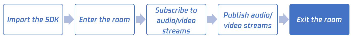 await trtc.exitRoom();// 退房成功后,若后续无需使用 trtc 实例,则可以调用 trtc.destroy 方法销毁实例,及时释放相关资源。销毁后的 trtc 实例无法继续使用,需要重新创建新的实例。trtc.destroy();