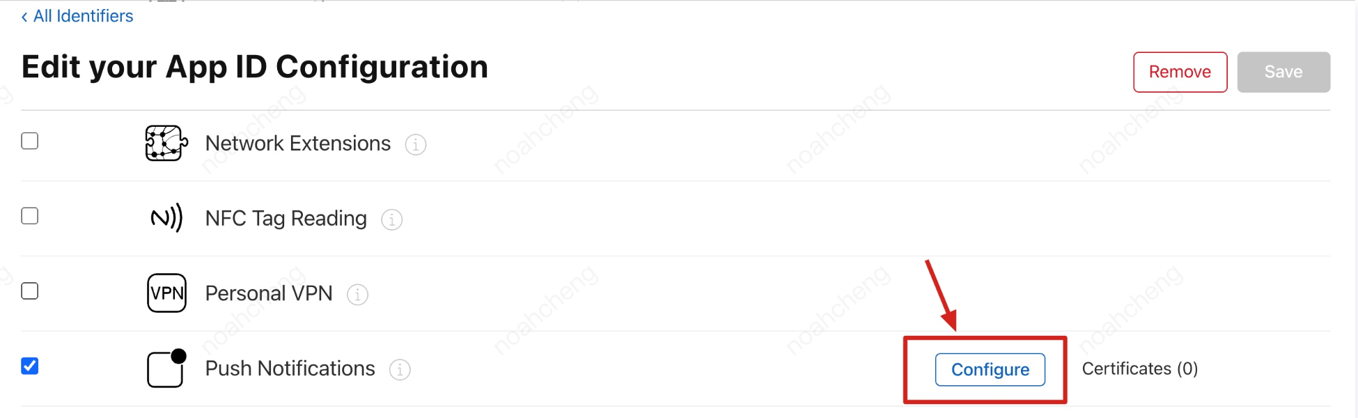 Editor > Add Target > Notification Service Extension 来创建一个 Extension。新创建的 Extension Target 需要配置 Apple 证书,具体方法可以 参考这里。// NotificationService.swiftimport UserNotificationsclass NotificationService: UNNotificationServiceExtension {var contentHandler: ((UNNotificationContent) -> Void)?var bestAttemptContent: UNMutableNotificationContent?override func didReceive(_ request: UNNotificationRequest, withContentHandler contentHandler: @escaping (UNNotificationContent) -> Void) {self.contentHandler = contentHandlerbestAttemptContent = (request.content.mutableCopy() as? UNMutableNotificationContent)if let bestAttemptContent = bestAttemptContent {// Modify the notification content here...bestAttemptContent.title = "\\(bestAttemptContent.title) [modified]"contentHandler(bestAttemptContent)}}override func serviceExtensionTimeWillExpire() {// Called just before the extension will be terminated by the system.// Use this as an opportunity to deliver your "best attempt" at modified content, otherwise the original push payload will be used.if let contentHandler = contentHandler, let bestAttemptContent = bestAttemptContent {contentHandler(bestAttemptContent)}}}