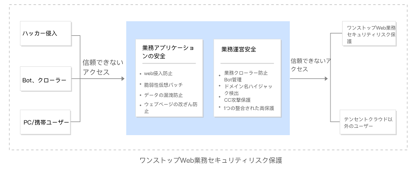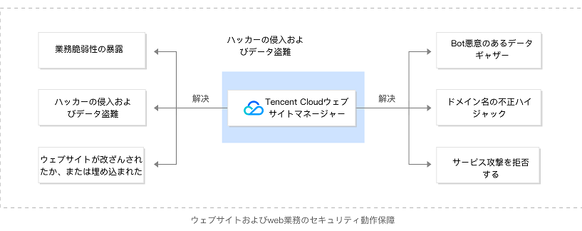 Tencent Cloud Web Application Firewall (WAF) は、内部および外部のTencent CloudユーザがWeb攻撃、侵入、脆弱性利用、ハング、改ざん、バックドア、クローラー、ドメイン名ハイジャックなどのウェブサイトおよびWeb業務の安全保護問題に対応するのに役立ちます。企業はTencent Cloud WAF サービスをデプロイすることにより、Web攻撃脅威からのストレスをTencent Cloud WAF 保護クラスターノードに移動し、Tencent CloudのWeb業務保護機能をわずか数分で利用開始でき、企業のウェブサイトとWeb業務の安全的な運営をバックアップします。