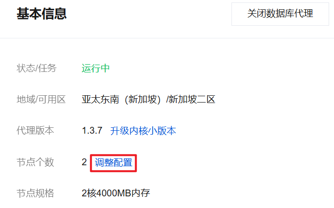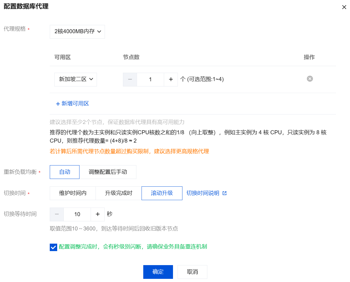 代理规格 | 可用区 | 节点个数 | 切换时间 | 影响 |