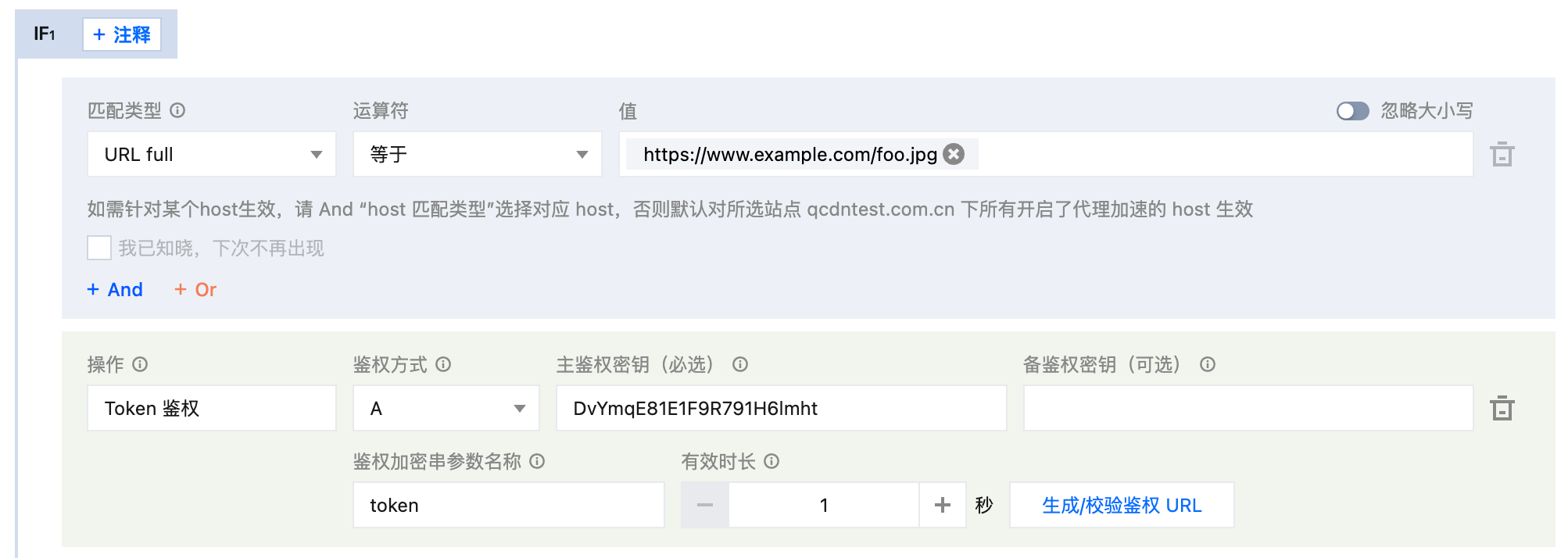 https://www.example.com/foo.jpg 使用鉴权方式 A,配置如下: