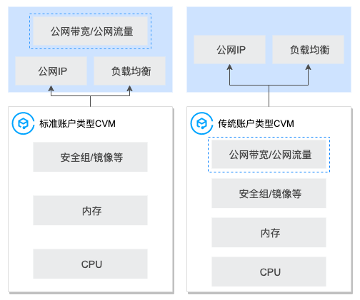 网络带宽是否可迁移给其他 CVM | 网络计费在 IP 上,可迁移给其他 CVM。 | 网络计费在绑定的云资源实例上收取,无法迁移给其他云资源。 |