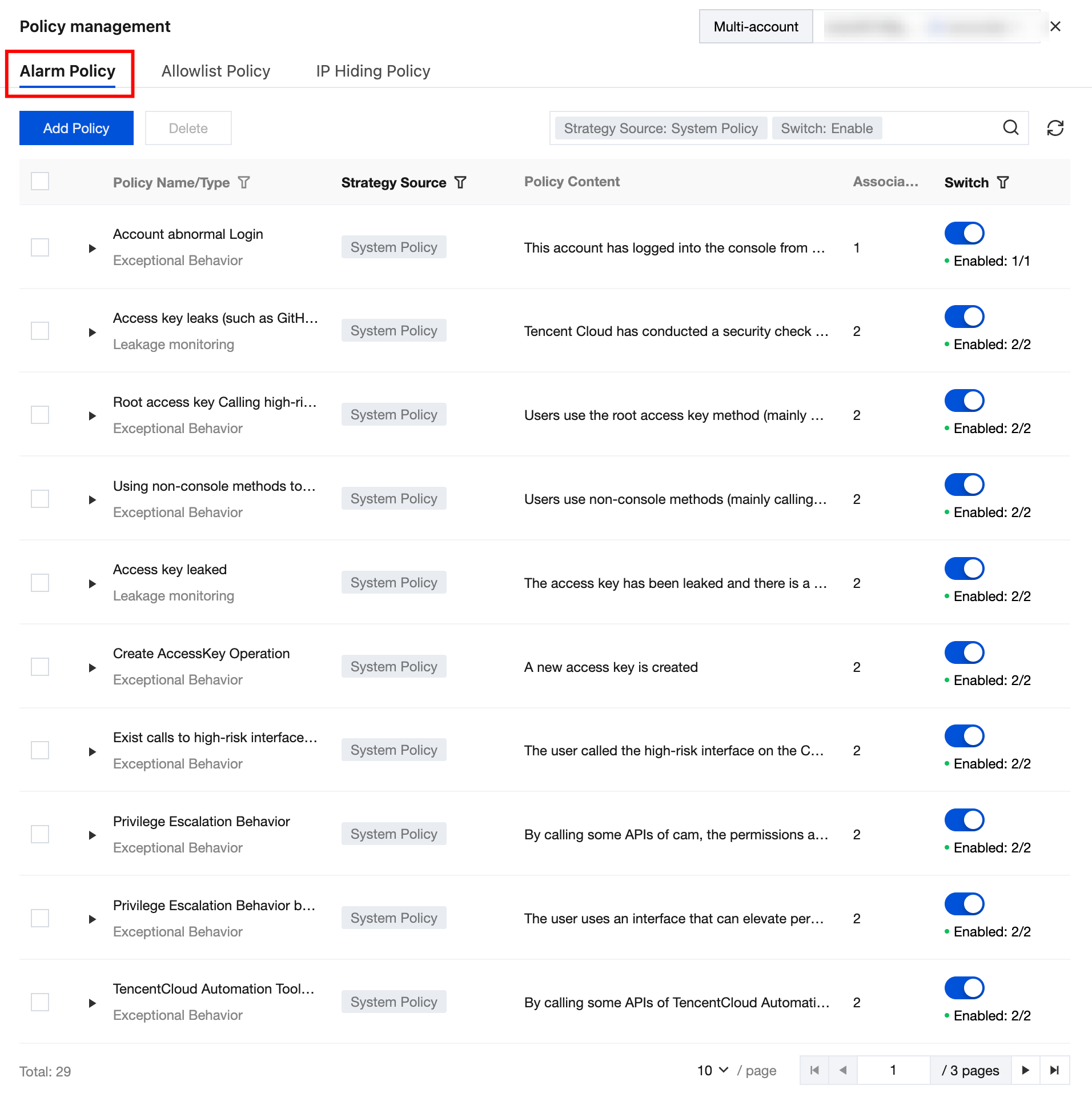 Policy takes effect | Select the alarm policy to allowlist, support multiple selections. If not select any policy, by default it applies to all policies. | - |