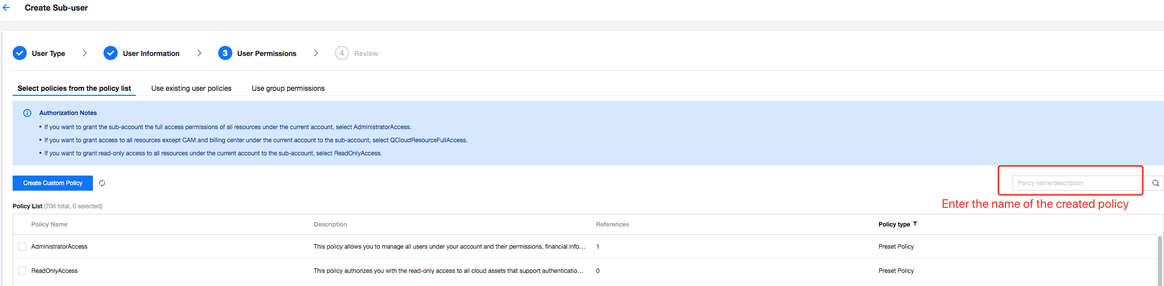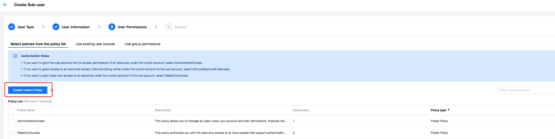 QcloudTPNSReadOnlyAccess | 可对主账号下所有应用进行数据可读及进行推送权限 |