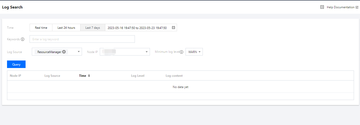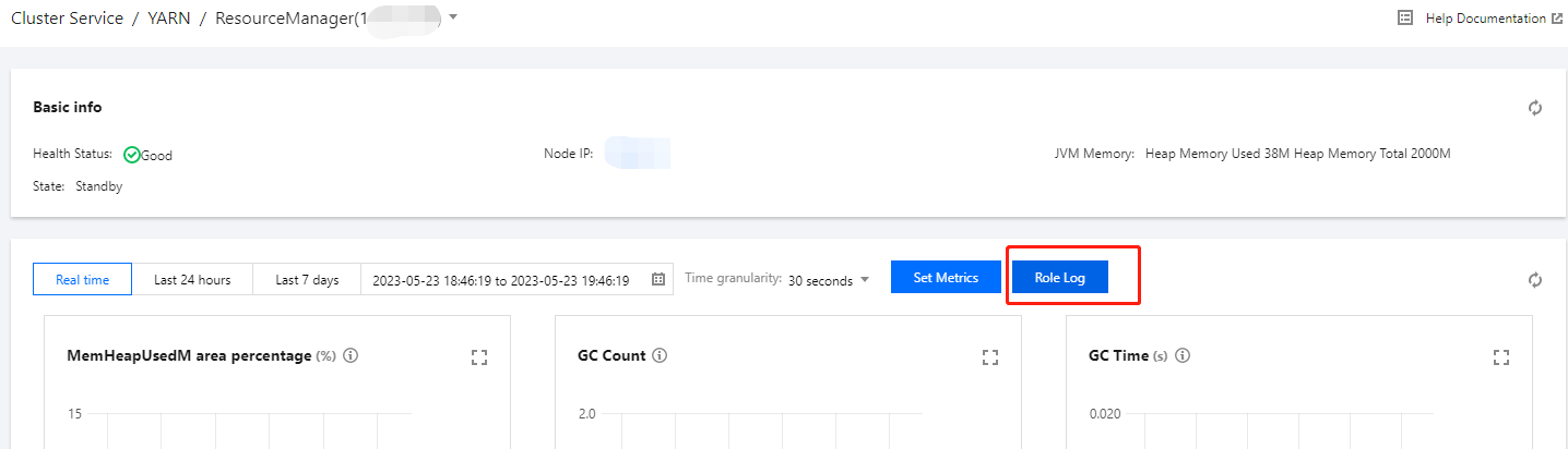 2. 在集群详情页中选择集群监控 > 日志搜索可根据当前集群、日志文件、节点 IP 和时间范围条件过滤,查看日志内容。 或者在集群详情页中选择集群服务>组件卡片>角色管理,查看角色列表,选择某一节点IP单击跳转,进入节点监控指标展示页,单击角色日志,可跳转日志搜索页面。