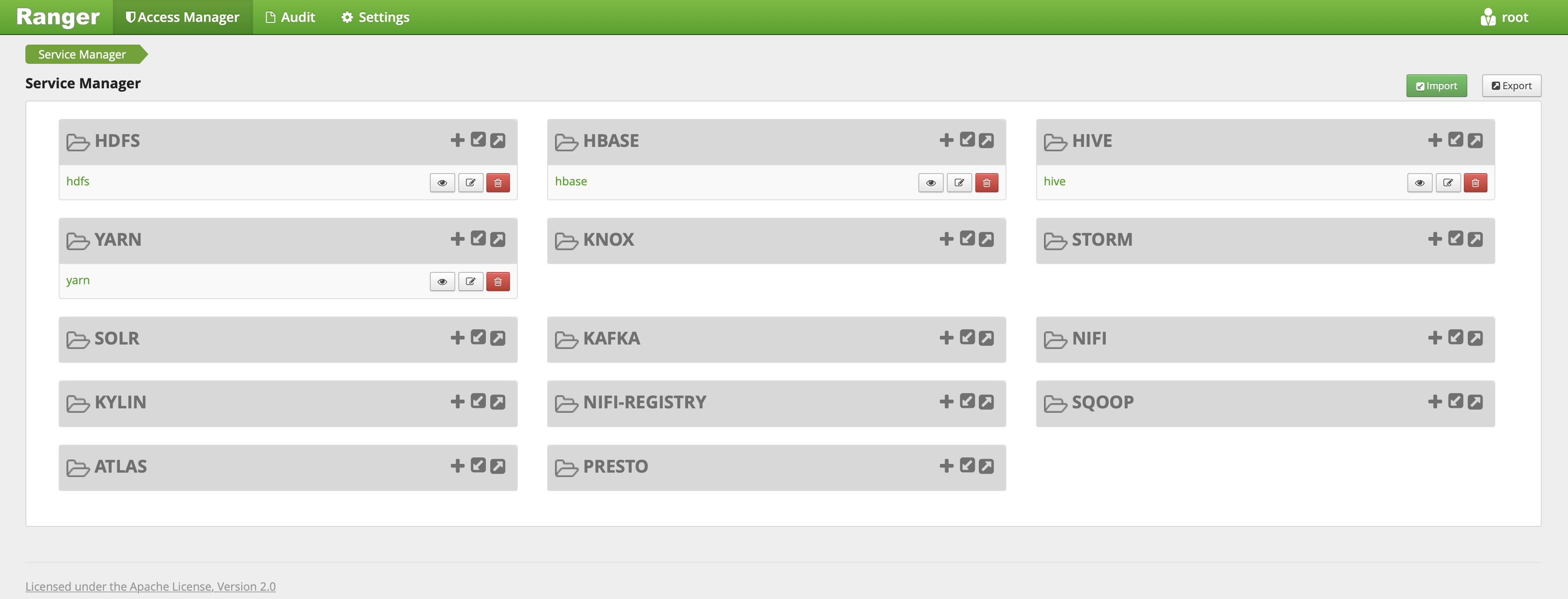 When the cluster type is Hadoop and the Ranger optional component is selected, EMR-Ranger will create services for HDFS and YARN by default and set default policies.