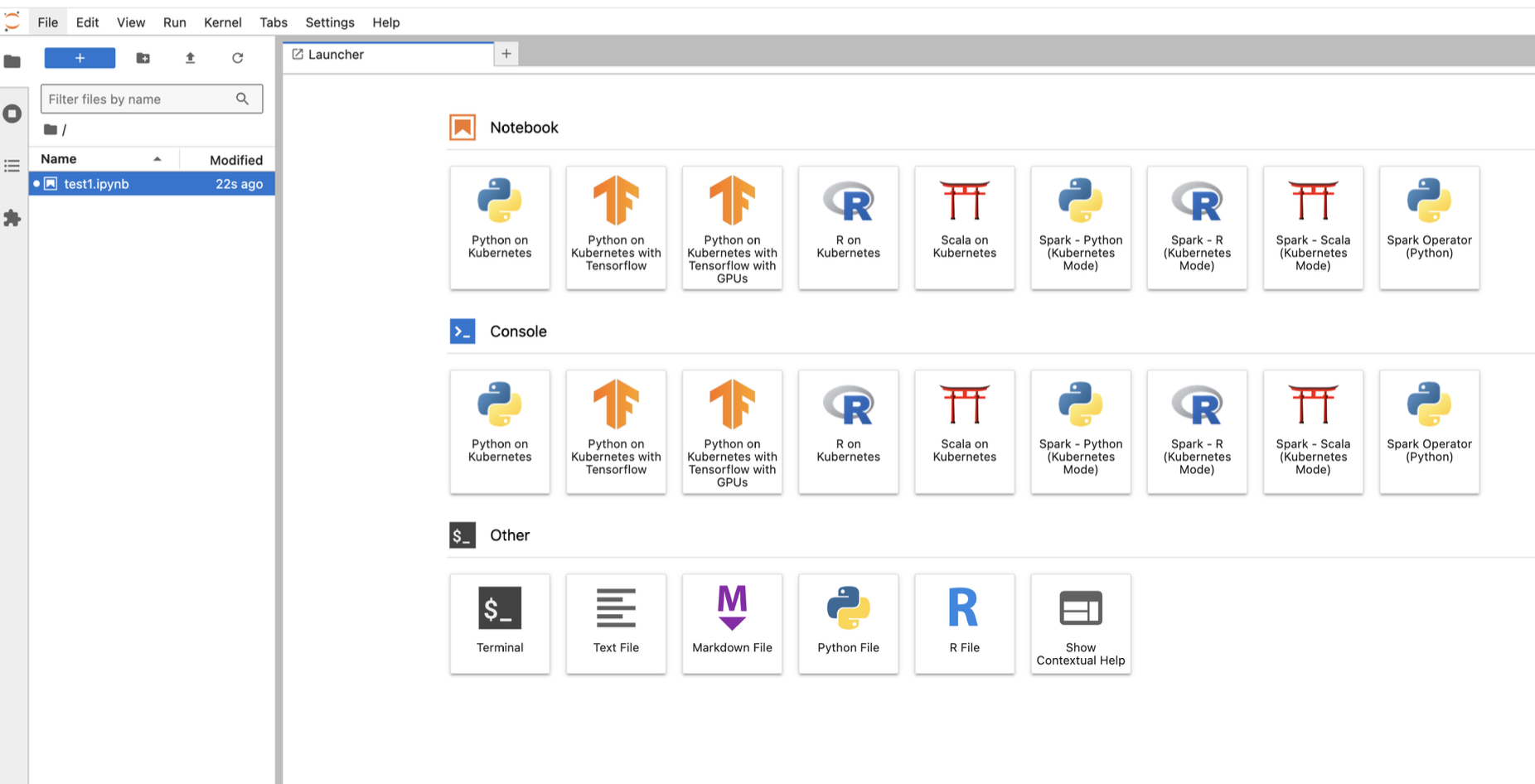 A machine learning cluster of EMR on TKE has been created and JupyterLab and Eg services are selected. For details, see Creating a Cluster. Access the JupyterLab WebUI