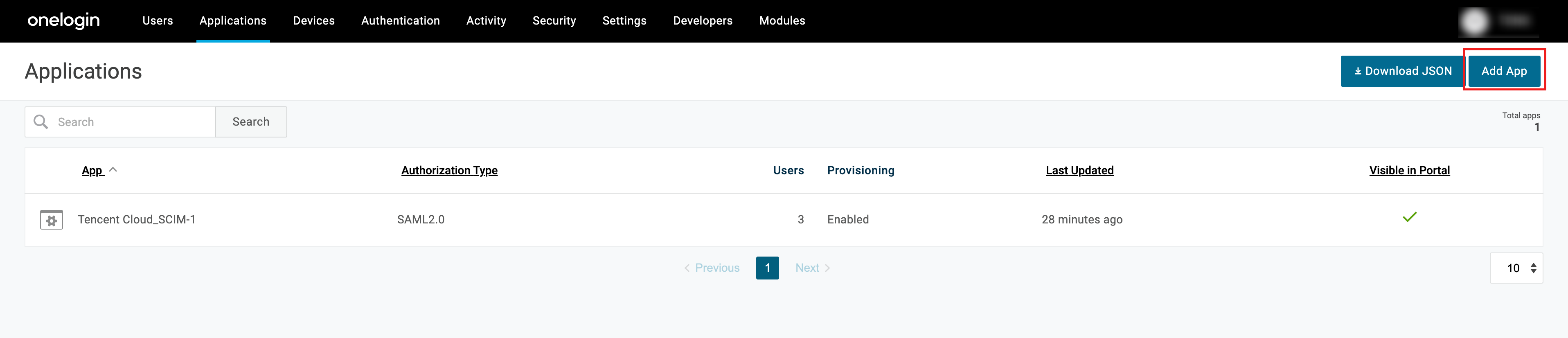 1. Administrator logs in to Onelogin, selects Applications > Applications from the top menu.