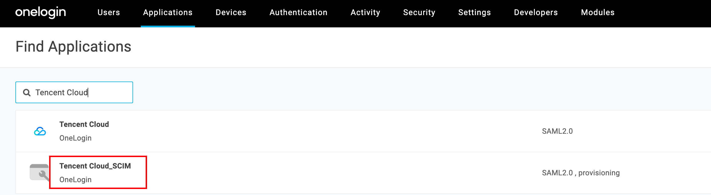 3. On the Find Applications page, click to select Tencent Cloud_SCIM.