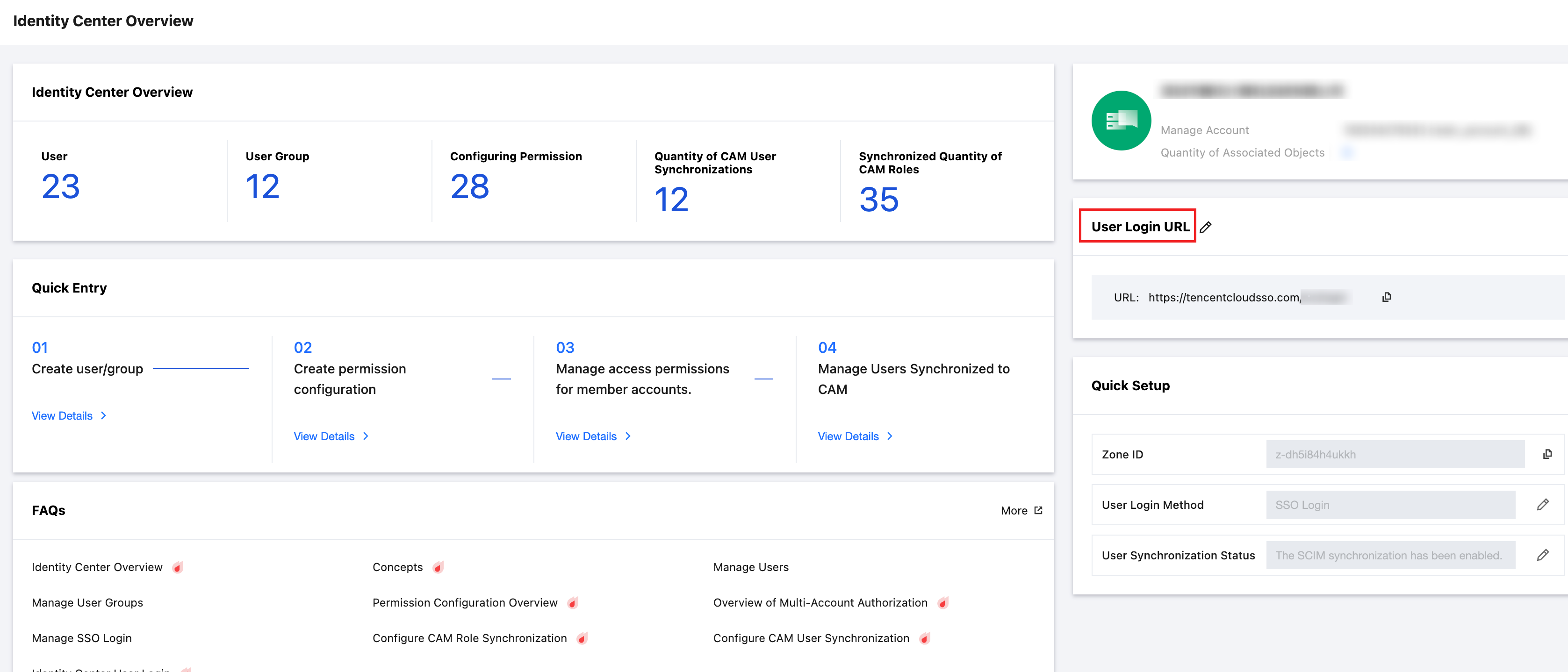 1. Identity Center administrators enter the page of TCO > Identity Center Management > Identity Center Overview, view and copy the User Login URL.