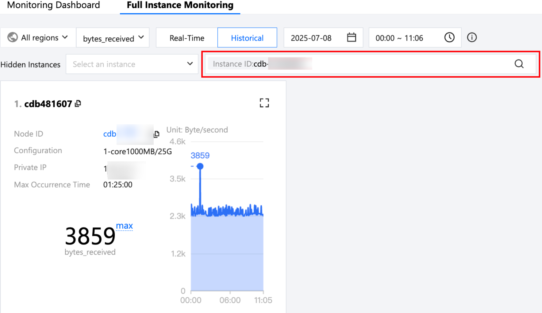 Filter by keywords: Optionally select resource attributes to filter and view instance monitoring information by keywords such as instance ID or instance name.