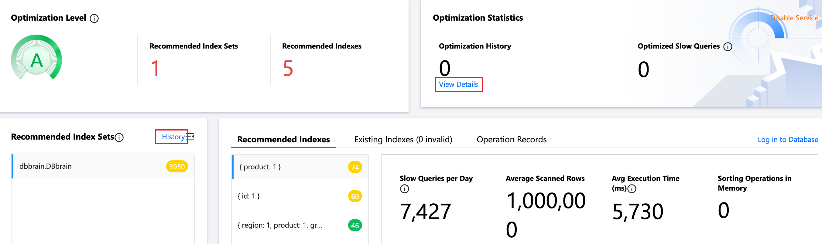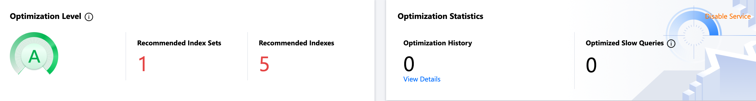 Optimization Historical : the number of historical index optimizations for the current instance. Click View Details to view specific historical index optimization information.