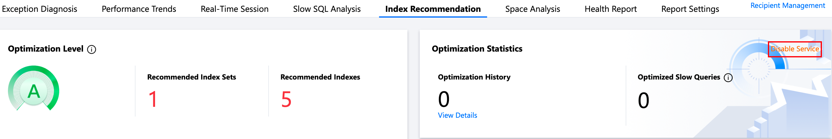 When you unlock the index recommendation feature for the first time, all data may not be obtained immediately as the calculation starts from the current time point. After this feature is enabled for a while, more data information will be displayed.