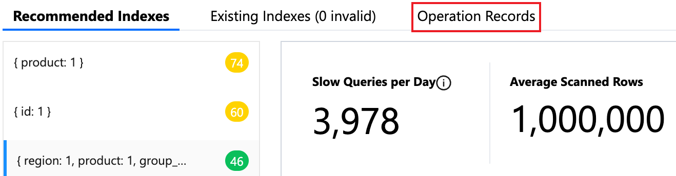 Recommended Indexes: It displays the indexes that need to be added due to excessively slow queries. Similarly, they are sorted by recommendation value, and a greater value indicates a more significant performance improvement after the indexes are added.