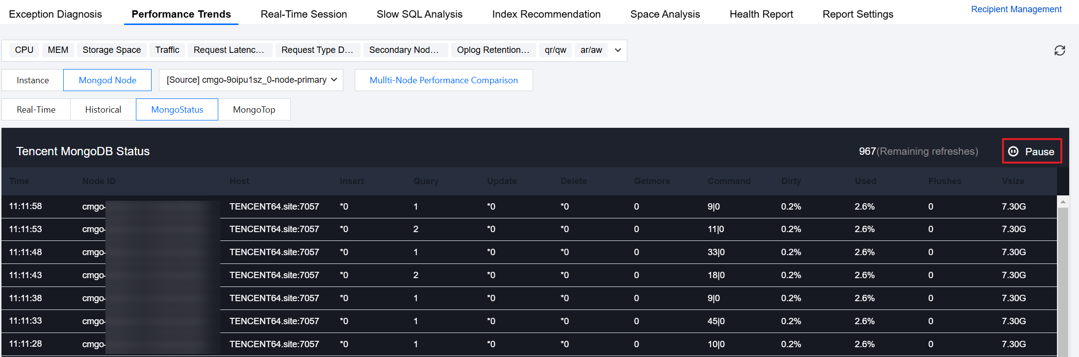 Update | Number of updates per second | 1. Check the index to ensure that the query has a corresponding index. 2. If update continuity is very high, it can be optimized with dirty and used analysis. |