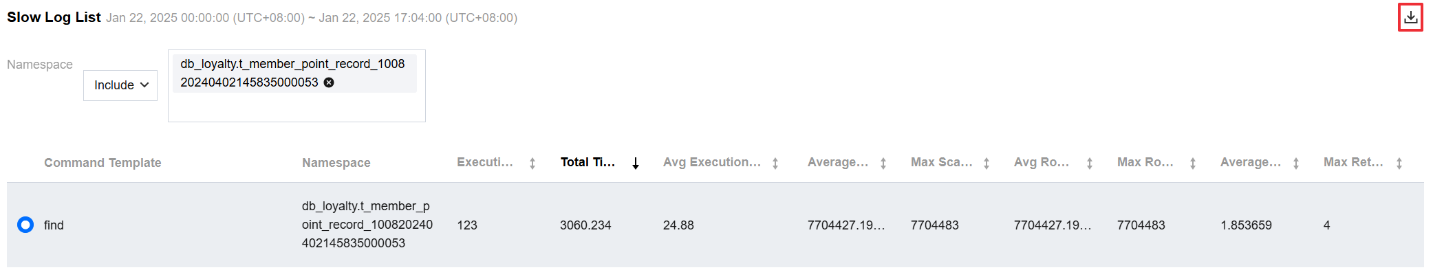 Above the slow SQL list, click to export all slow SQL details of the current list. The export format is .csv. Related Operations