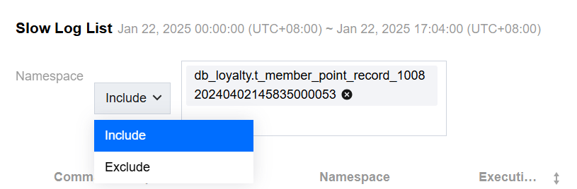 It supports inclusion or exclusion. After selecting, you can enter one or more namespaces. If you select Include, the relationship between multiple namespaces is OR, and if you select Exclude, the relationship is AND.