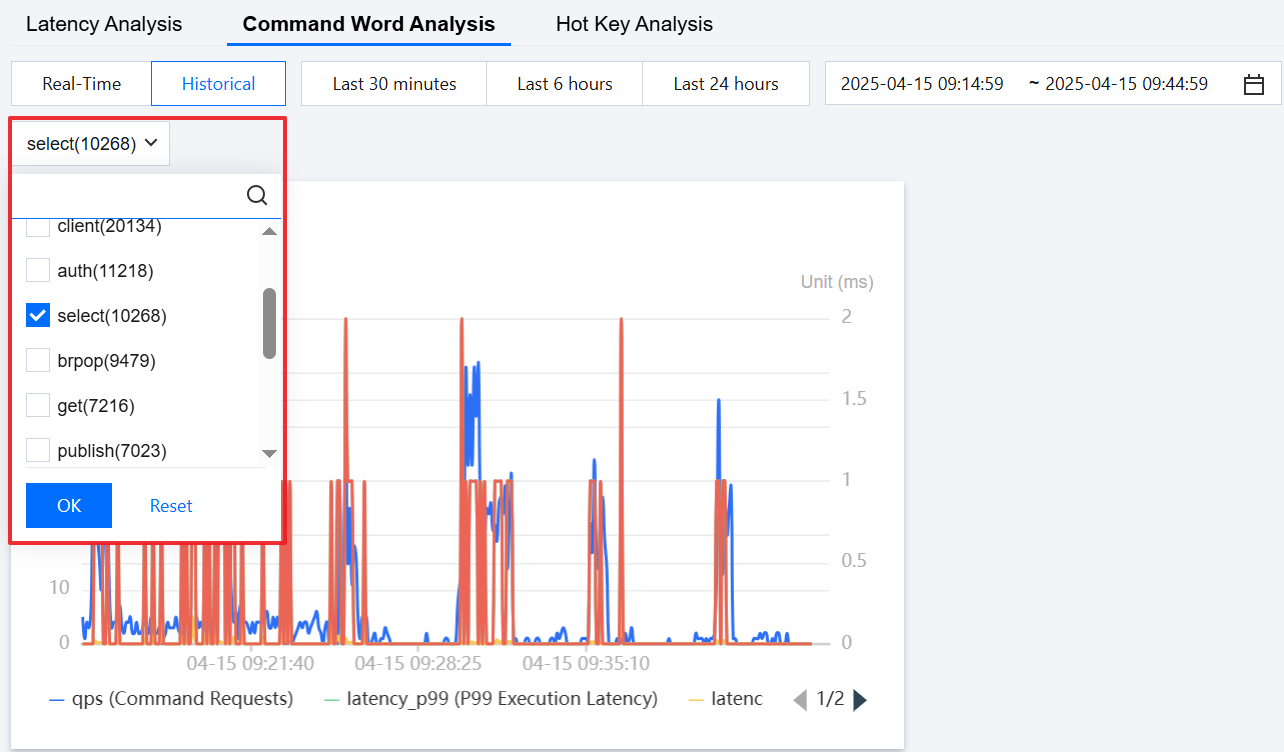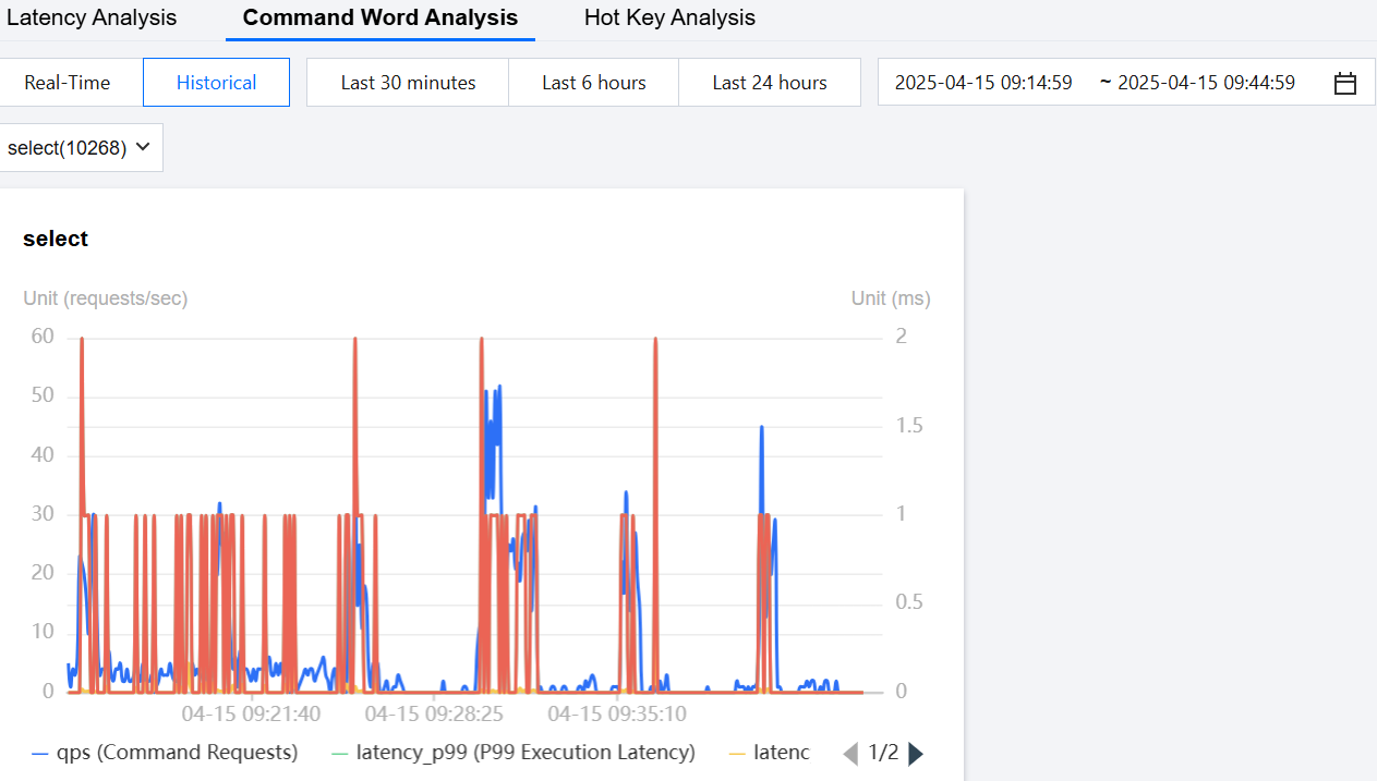 Frequent DB Switching (Frequent SELECT Commands) | Frequent DB switching leads to excessive resource overhead. | Use the Performance Optimization > Latency Analysis > Command Word Analysis feature to monitor and confirm if there are many SELECT requests. For detailed troubleshooting methods, please see Troubleshooting Frequent SELECT Commands. | If different businesses are being stored, it is recommended to separate storage for tasks involving frequent DB switching. If the same business is being stored, consider storing the data in the same DB to reduce the number of select operations, provided that the Key names do not conflict. |