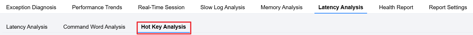 1. Log in to the DBbrain Console and select Performance Optimization on the left sidebar. 2. At the top of the page, select Database Type as Redis and specify the instance ID. Select Latency Analysis > Hot Key Analysis.