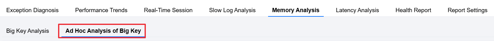 If you need to perform daily large key analysis periodically during routine Ops, enable the Instance Large Key Analysis feature. For specific operations, see Memory Analysis (Large Key Analysis). Solution: