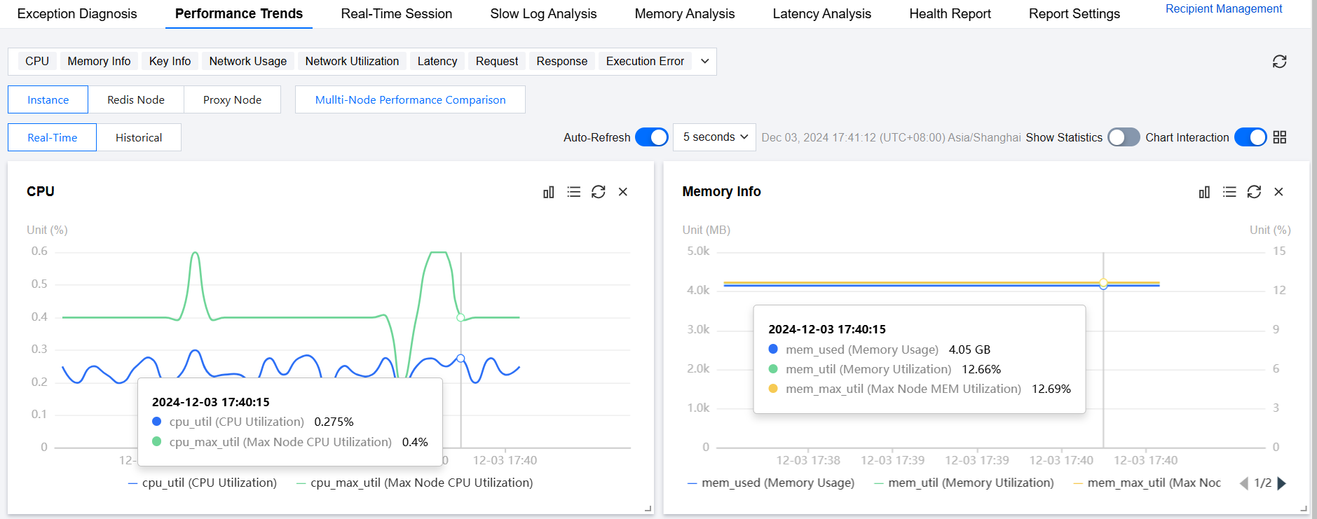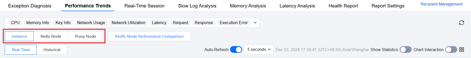 3. Select the instance, Redis node, or Proxy node you want to view.