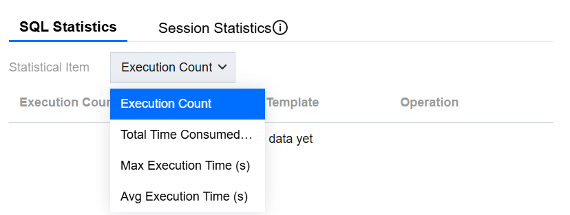 Select the SQL Statistics tab, and select the statistics items (including execution count, total duration, maximum execution time, and average execution time) to view real-time statistics of SQL statements in different dimensions.
