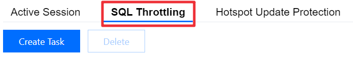 Source | Initiated by User: It indicates the SQL traffic throttling task created on the Real-Time Sessions page. |
