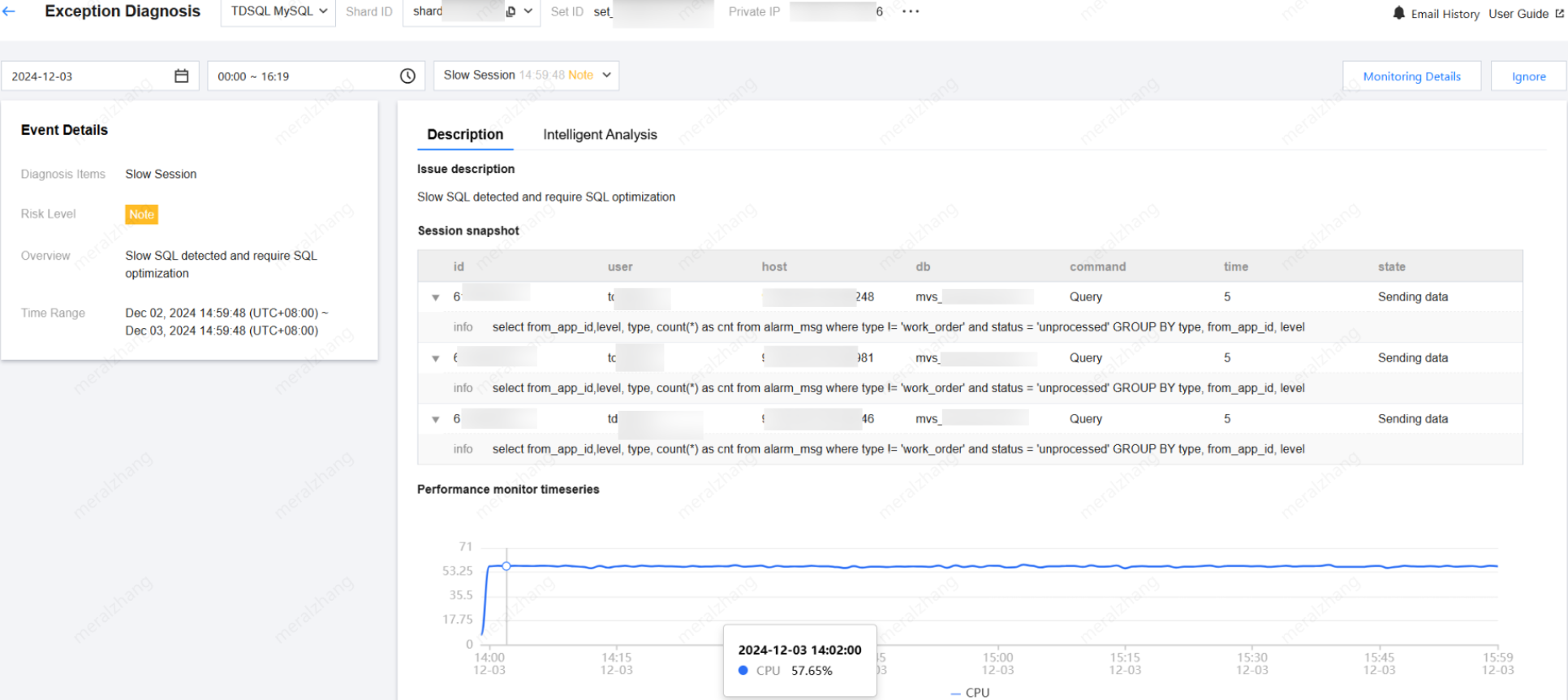 Slow SQL | Performance | Optimization is required for slow query statements. | Note |