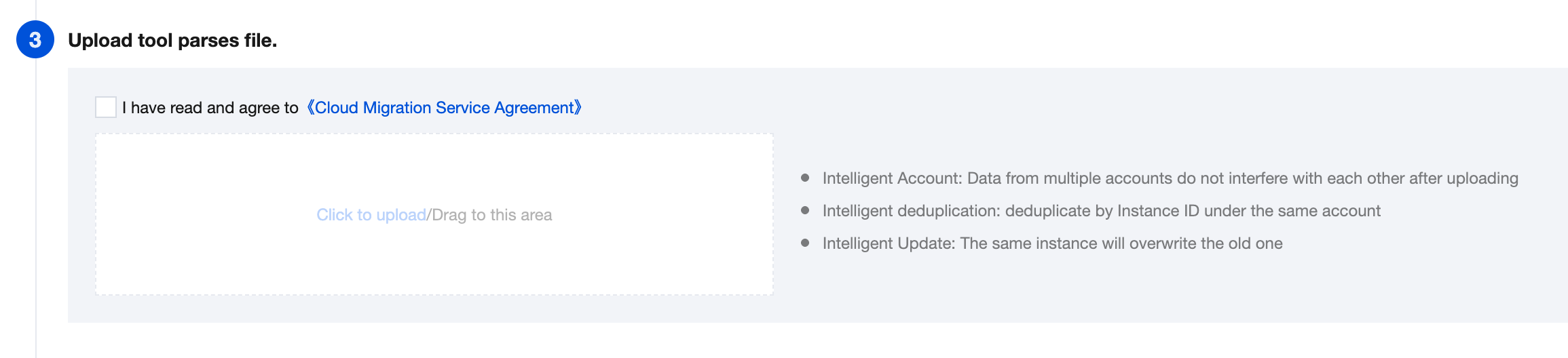 Enter Cloud Migration console > Origin Server Collection > AWS Tool Research > Upload Tool File Parsing, upload the result file in .xlsx format (such as aws_scan_20241008084938.xlsx).