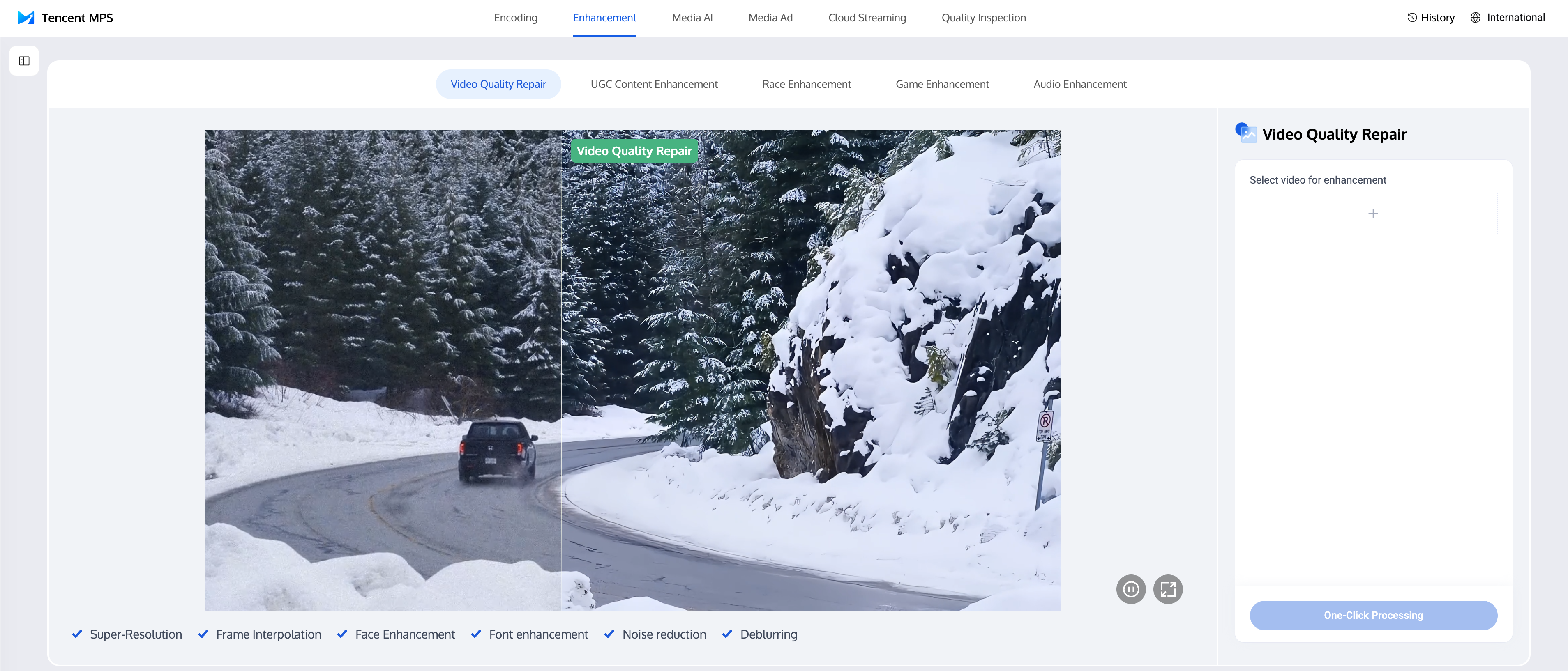 The audio/video enhancement feature relies on the leading audio/video AI processing models of MPS and its rich accumulation of business data to provide professional-level audio/video enhancement solutions. This feature supports distributed real-time image quality enhancement, such as video artifacts removal, denoising, color enhancement, face enhancement, SDR2HDR, and large model enhancement, which can significantly improve the quality of audio and video. It is widely used in OTT, e-commerce, sports events, and other scenarios, effectively achieving dual-dimensional improvement in QoE and QoS, creating significant business value.