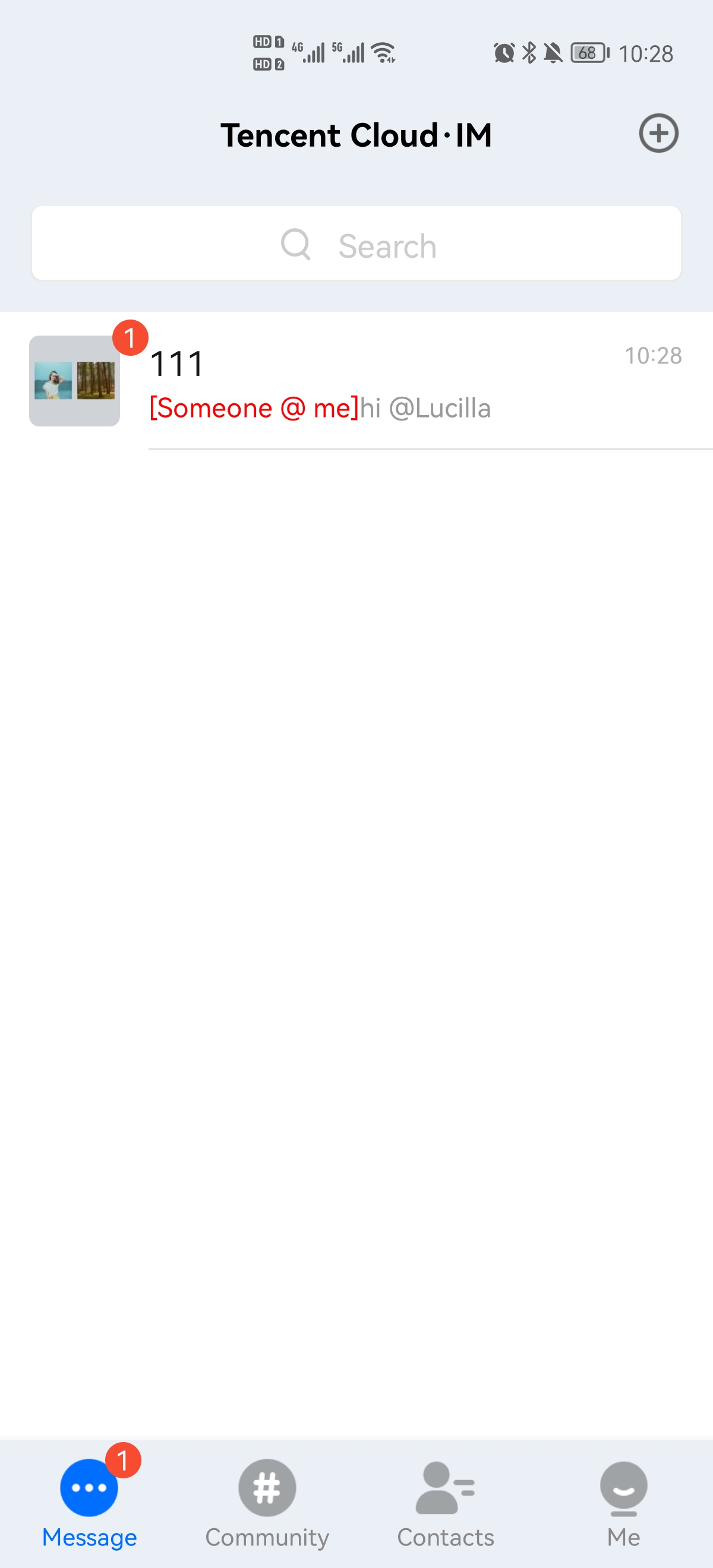In the group chat list of the receiver's conversation UI, the identifier "someone@me" or "@all" will be displayed to remind the user that the user was mentioned by someone in the group chat.Listening for the @ character for group member selection | Editing and sending the group @ message | Receiving the group @ message |
