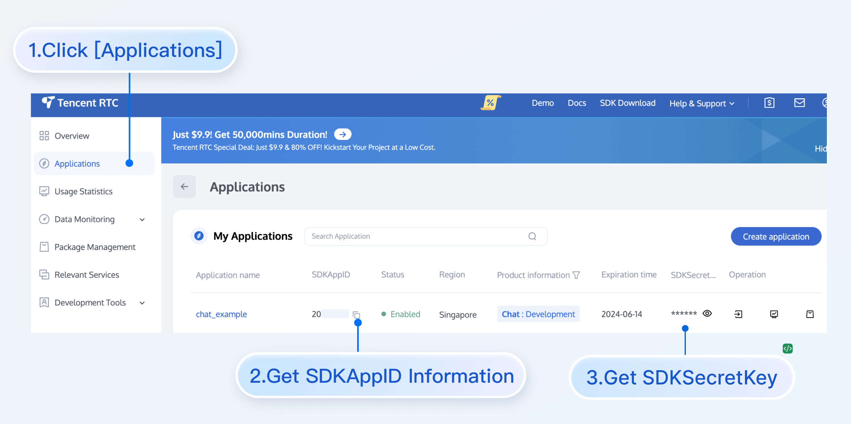 SDKAppID, userID, and UserSig. You need to replace them with the relevant information obtained in Step 4.