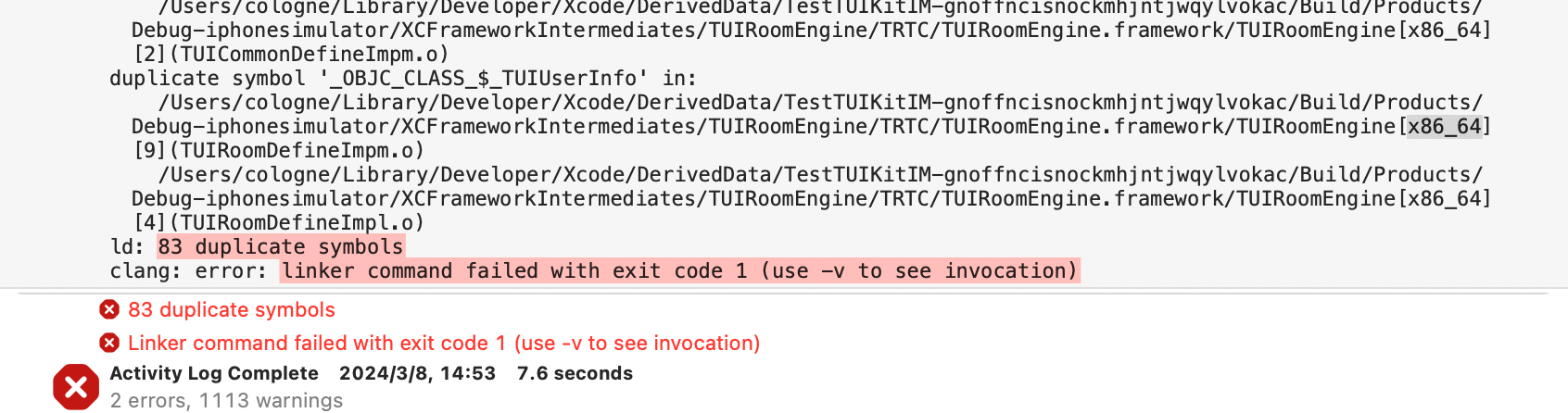 TXLiteAVSDK_Enterprise library, symbol conflicts will occur. We recommend upgrading to TXLiteAVSDK_Professional and then using TUICallKit_Swift/Professional.Feedback
