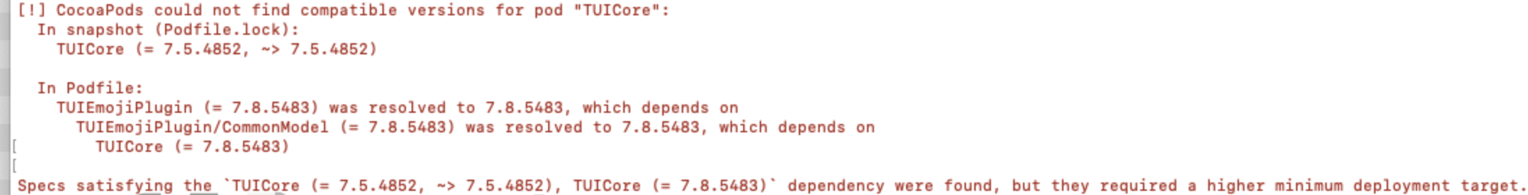 pod 'TUIChat' in your Podfile without specifying Classic or Minimalist UI, both UI component versions will be integrated by default.TUIChat component must be used with Classic TUIConversation and TUIContact components. Similarly, the Minimalist TUIChat component must be used with Minimalist TUIConversation and TUIContact components.use_modular_headers! and use the @import module format for header imports.# Uncomment the next line to define a global platform for your project# ...source 'https://github.com/CocoaPods/Specs.git'platform :ios, '13.0'# Prevent `*.xcassets` in TUIKit from conflicting with your projectinstall! 'cocoapods', :disable_input_output_paths => true# Replace `your_project_name` with your actual project nametarget 'your_project_name' douse_frameworks!use_modular_headers!# Integrate the chat featurepod 'TUIChat_Swift/UI_Minimalist'# Integrate the conversation list featurepod 'TUIConversation_Swift/UI_Minimalist'# Integrate the relationship chain featurepod 'TUIContact_Swift/UI_Minimalist'# Integrate the search feature (To use this feature, you need to purchase the Pro edition 、Pro Plus edition or Enterprise edition)pod 'TUISearch_Swift/UI_Minimalist'# Integrate the audio/video call featurepod 'TUICallKit_Swift'# Integrate Translation Plugin(Value-added feature activation required, please contact Tencent Cloud Business to activate)pod 'TUITranslationPlugin_Swift'# Integrate Session Tagging Pluginpod 'TUIConversationMarkPlugin_Swift'# Integrate Speech-to-Text Pluginpod 'TUIVoiceToTextPlugin_Swift'end#Pods configpost_install do |installer|installer.pods_project.targets.each do |target|target.build_configurations.each do |config|#Fix Xcode14 Bundle target errorconfig.build_settings['EXPANDED_CODE_SIGN_IDENTITY'] = ""config.build_settings['CODE_SIGNING_REQUIRED'] = "NO"config.build_settings['CODE_SIGNING_ALLOWED'] = "NO"config.build_settings['ENABLE_BITCODE'] = "NO"config.build_settings['IPHONEOS_DEPLOYMENT_TARGET'] = "13.0"#Fix Xcode15 other links flag -ld64xcode_version = `xcrun xcodebuild -version | grep Xcode | cut -d' ' -f2`.to_fif xcode_version >= 15xcconfig_path = config.base_configuration_reference.real_pathxcconfig = File.read(xcconfig_path)if xcconfig.include?("OTHER_LDFLAGS") == falsexcconfig = xcconfig + "\\n" + 'OTHER_LDFLAGS = $(inherited) "-ld64"'elseif xcconfig.include?("OTHER_LDFLAGS = $(inherited)") == falsexcconfig = xcconfig.sub("OTHER_LDFLAGS", "OTHER_LDFLAGS = $(inherited)")endif xcconfig.include?("-ld64") == falsexcconfig = xcconfig.sub("OTHER_LDFLAGS = $(inherited)", 'OTHER_LDFLAGS = $(inherited) "-ld64"')endendFile.open(xcconfig_path, "w") { |file| file << xcconfig }endendendend