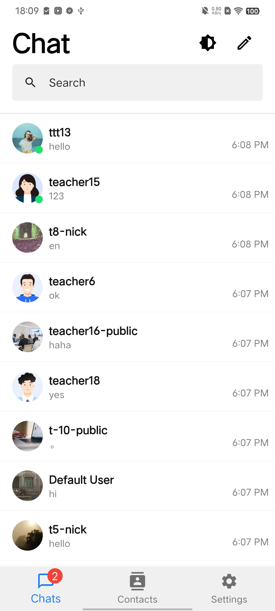 When "Show User Online Status" is enabled, user online status will be displayed on each user's avatar in the chat list and contact list.