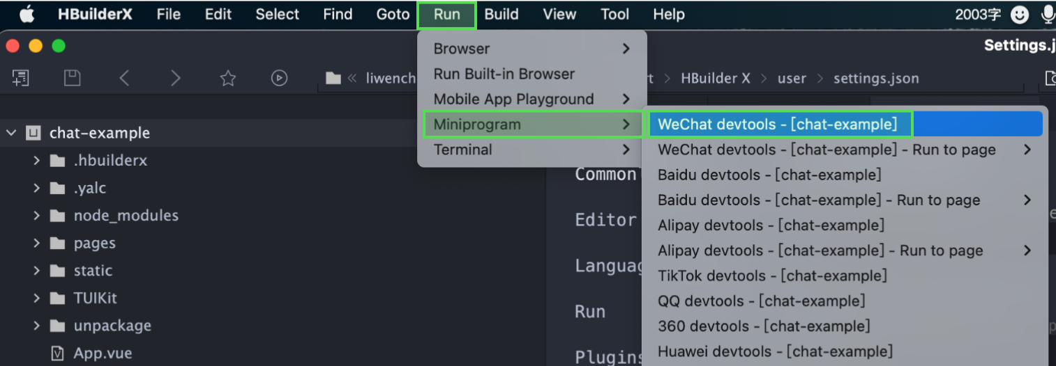 1. Using HBuilderX to start the project, click "Run > Run to Mini Program Simulator > WeChat Developer Tools".