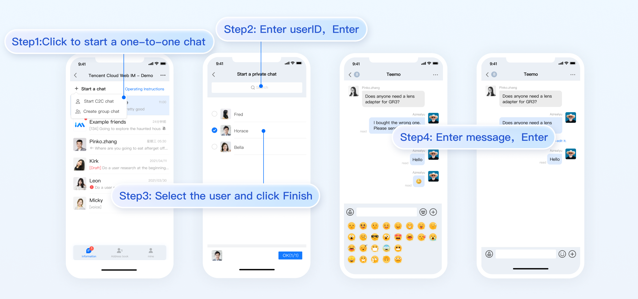 Click the Open Session List button, enter the userID created in Step 4 in the search box, then click [Done] once selected to send your first message. Step 3: Preparation before Publishing & WeChat Mini Program Size Optimization