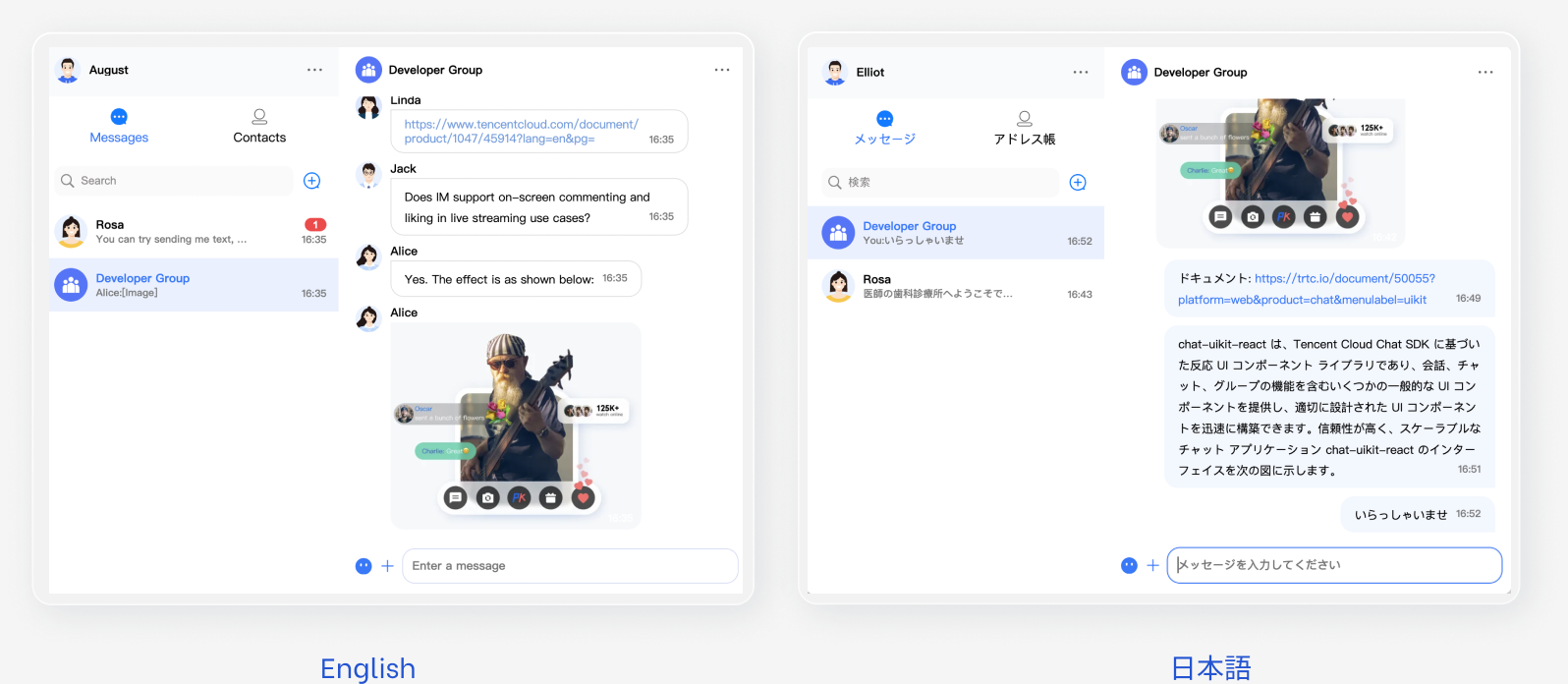UIKitProvider, dynamically switch React UIKit language.import { UIKitProvider, ConversationList } from '@tencentcloud/chat-uikit-react';function App() {const [lang, setLang] = useState<'en-US' | 'zh-CN' | 'zh-TW' | 'ja-JP' | 'ko-KR'>('en-US');return (<div><button onClick={() => setLang('zh-CN')}>Chinese</button><button onClick={() => setLang('en-US')}>English</button><div>{`Current language: ${lang}`}</div><UIKitProviderlanguage={lang}theme="light"><ConversationList /></UIKitProvider></div>);}