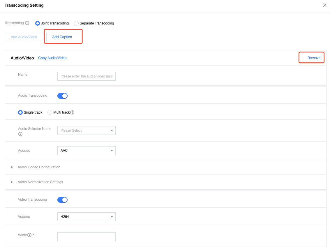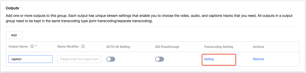 Audio Selector Name | For input with multiple audio tracks, please identify which audio to use by selecting an audio selector name. The audio selector name can be configured in the Input Setting. |