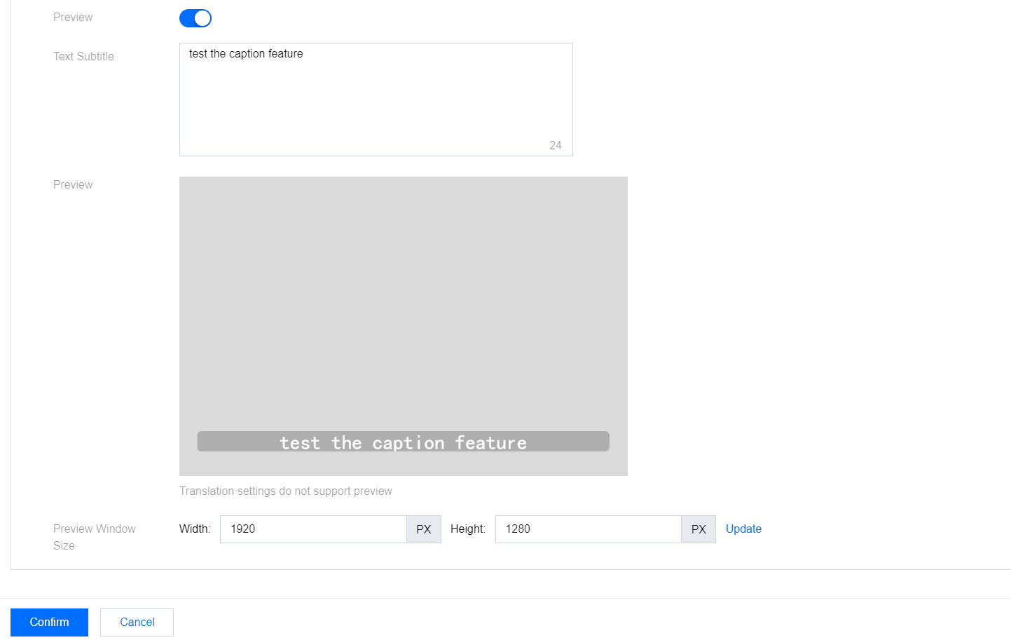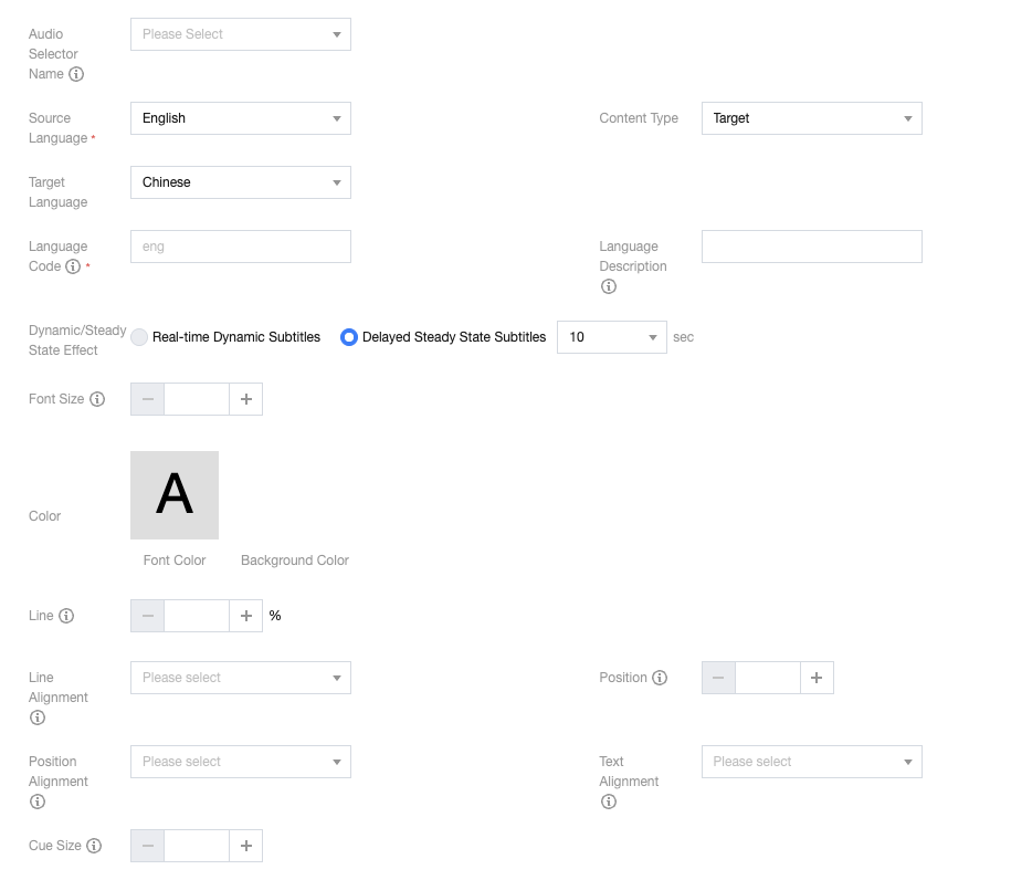 Dynamic/Steady State Effect | Currently only support Delayed Steady State. The system will delay the live streaming according to the set time, but the experience of watching complete sentence is better. The default delay time is 10 seconds. |